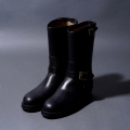 ヨーロッパのドレスシューズに使用される最高級ランクのベンズ、イタリアン オイルドオークバーグをソールに使用し反り返りの良さ、歩きやすさ、疲れにくさを体感することができます。従来のエンジニアより軽量化に成功し、ライディング〜タウンユースまで、ヘビーデューティーにご使用していただけます。作りは出し縫いグッドイヤー製法でソールは、Vibramセパレート仕様。履き始めは硬い履き味となっていますが、徐々に硬さが取れて革が馴染み、次第に足に吸い付く様になっていきます。雨天でも気にせずガンガン履ける、とくにかくタフなホースレザーブーツですので、幅広いシーンで楽しく履けるでしょう。