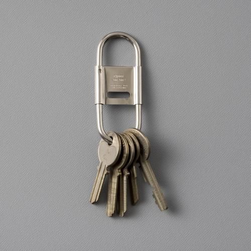 スプリング式で脱着しやすく、開閉式のセンターパーツがストッパーになっているのでベルトループに付けた際にキーリングと鍵の回転を防ぎます。