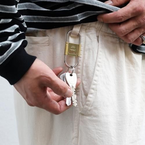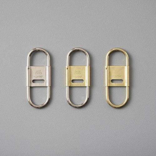 スプリング式で脱着しやすく、開閉式のセンターパーツがストッパーになっているのでベルトループに付けた際にキーリングと鍵の回転を防ぎます。