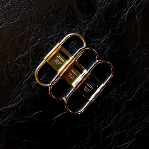 スプリング式で脱着しやすく、開閉式のセンターパーツがストッパーになっているのでベルトループに付けた際にキーリングと鍵の回転を防ぎます。