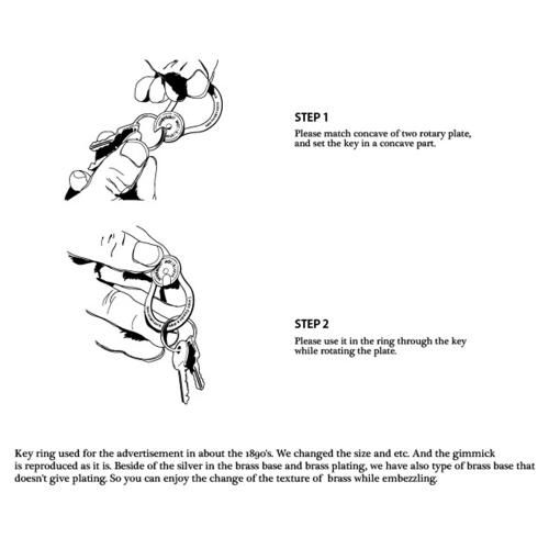 1890年代頃に広告用に使われていたキーリングをサイズなどを変更、ギミックはそのままに再現しました。使い込む内に変化していく真鍮の風合いを楽しめます。