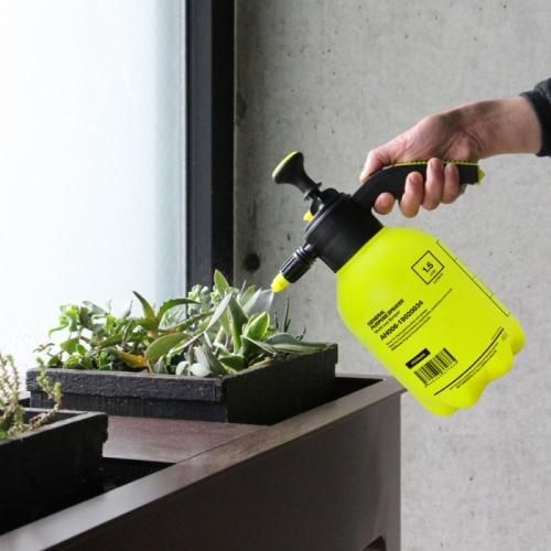1.5Lの大容量でたくさんのプラントにスプレーするのに最適です。ノズルを回せば霧、直射の調整も可能で、付属の専用アタッチメントに切り替えれば、葉の茂った植物の根元や葉裏などへ直接噴霧できます。