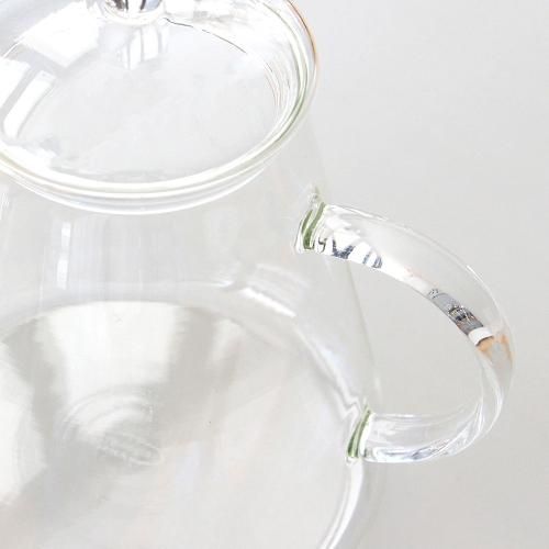 本体から持ち手、蓋まですべてイエナグラスが使用されており、他にはない透明感とそのクラシカルなデザインは中に注がれたドリンクを美しく映えさせ、日々のティータイムを華やかに彩ってくれます。未使用時にはインテリアとして見える場所に飾っていても活躍してくれることでしょう。