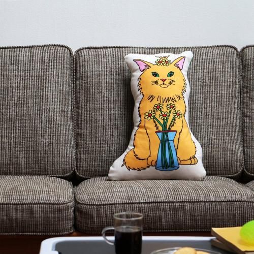 ほど良い弾力のあるクッションは、まるでペットを抱っこしているような気持ちにさせてくれます。サイズ感もちょうど良く、ずっと抱えていたくなるようなクッションに仕上がりました。