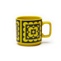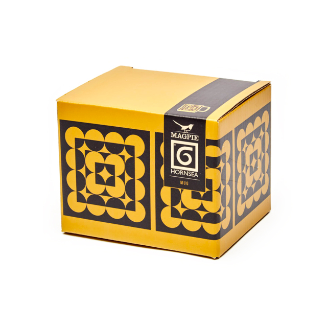 Squarclesの柄は創業メンバーの息子でチーフデザイナーであるジョン・クラピソンが手がけたデザイン。正方形が重なり合うような幾何学的なデザインで、中央に向かって縮小する構図が印象的。ChartreuseとはHornseaのデザインの中でも代表的な色味のひとつで、鮮やかな黄緑色(シャルトルーズ)を基調に、黒のパターンが際立つヴィンテージ調が特徴です。パッケージはそのままギフトとして差し上げられるデザインで、北欧テイストやヴィンテージ好きの方にはきっと喜んでいただけるはずです。