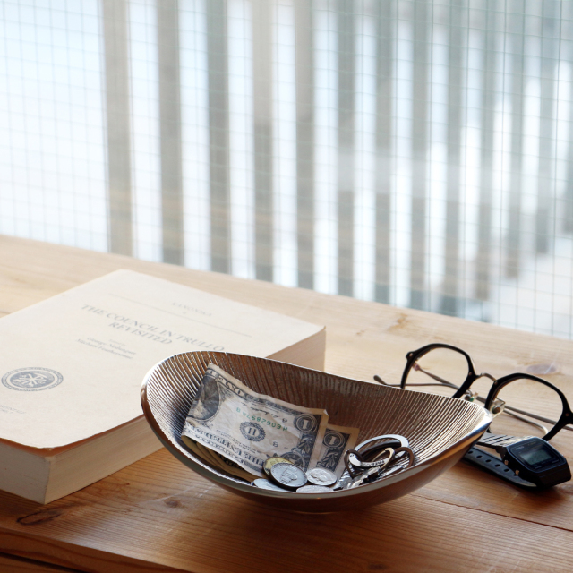 鍵や財布など身の回りの品を入れておく場所にしたり、アクセサリートレイとして使ったり。灰皿としても使用することができます。