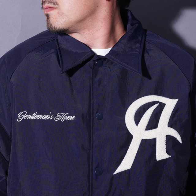 AMERICAN WANNABE/アメリカンワナビー「TEAM LOGO LONG COACH JACKET / NAVY」ロングコーチジャケット
