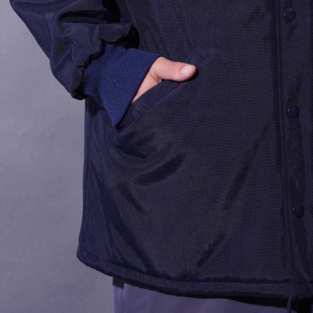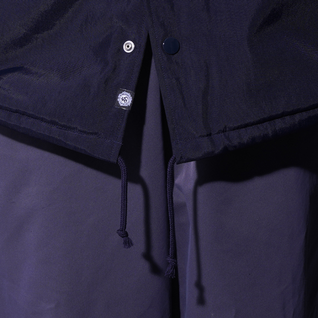 オリジナルパターンで製作したコーチジャケット。摩擦や引き裂きに強い耐久性の高いナイロンを採用し、裏地には保温性に優れたフリースを使用。フロントはスナップボタン、裾にはシルエット調整ができるドローコードを備えています。