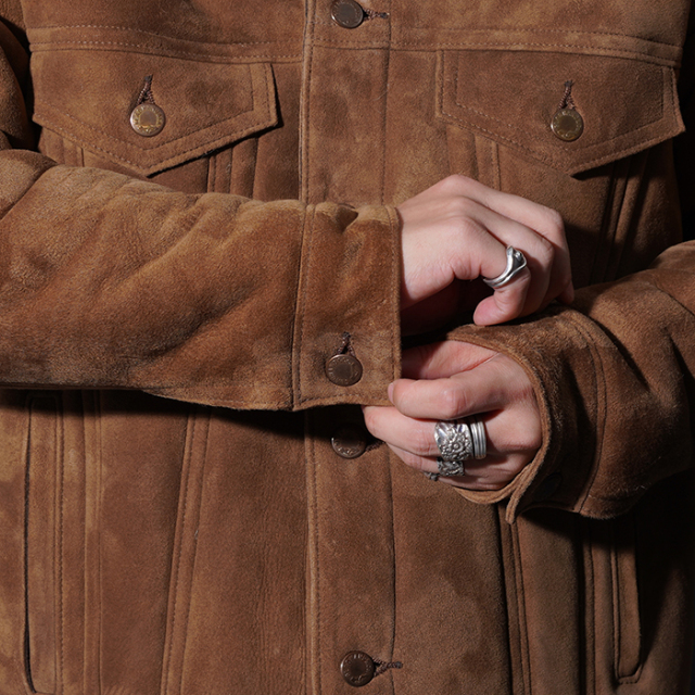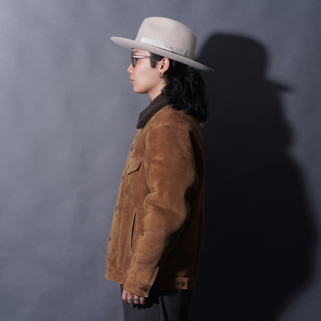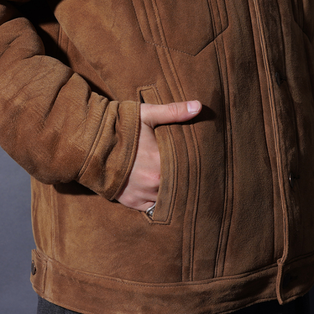 時代に左右されないスタイルのトラッカージャケットをベースに、贅沢にムートンで製作したジャケット。
