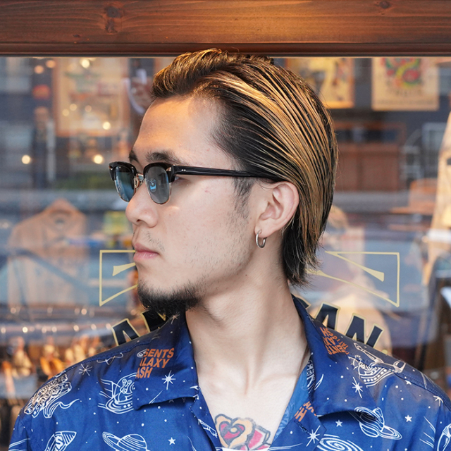日本製アセテート生地にチタン合金のリムをコンビネーションした、至極のサーモントフレームに仕上がっています。GROOVERのコンビネーションフレームは国産随一の出来栄えを誇り、「GYARD」が手間暇を惜しまず作り込んでおります。生産工程の多さは、GROOVERのラインナップでも一番多いモデルの一つに数えられます。