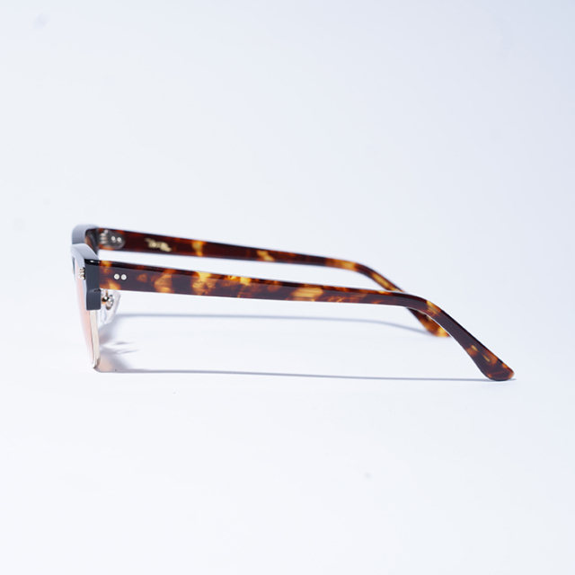 日本製アセテート生地にチタン合金のリムをコンビネーションした、至極のサーモントフレームに仕上がっています。GROOVERのコンビネーションフレームは国産随一の出来栄えを誇り、「GYARD」が手間暇を惜しまず作り込んでおります。生産工程の多さは、GROOVERのラインナップでも一番多いモデルの一つに数えられます。