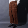 静岡県遠州で、膨らみを持たせながら織りあげたコール天に、特殊なプリント技法を用いエンボスのような立体感の柄を表現しつつ、生地の素材感は損なわない技法で仕上げました。