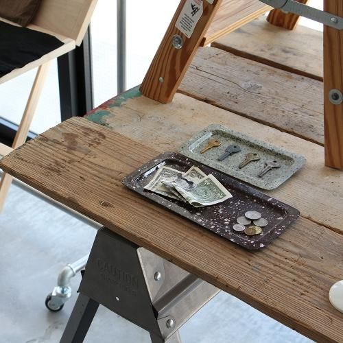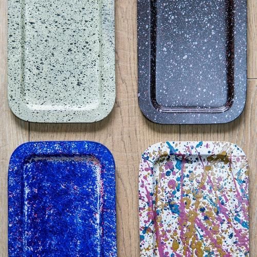 斑点模様のスチール製マルチトレイ。