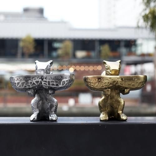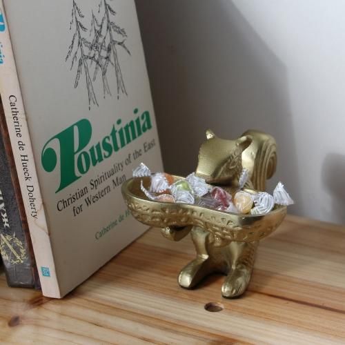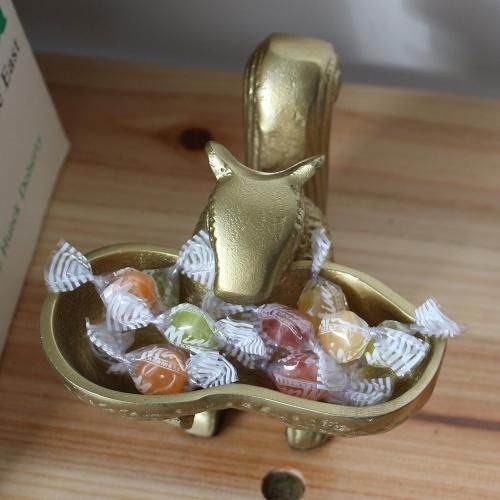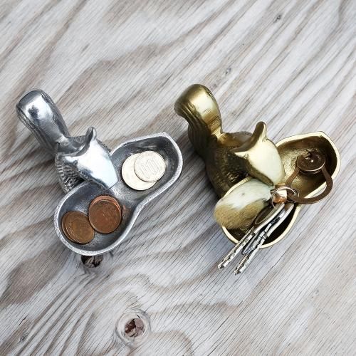 玄関先で鍵や小物を置いたり、キャンディやナッツなどお菓子皿としても使用可能です。アンティーク調に仕上げられたカラーリングはどの部屋、どの場所でも馴染みがよく、インテリアとしても目を惹くアイテムです。可愛いリスが大事に抱えたナッツにいろんな物を持たせて楽しんでください。
