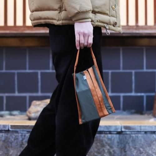 必需品を持ち運ぶミニマルなハンドルフラットポーチ