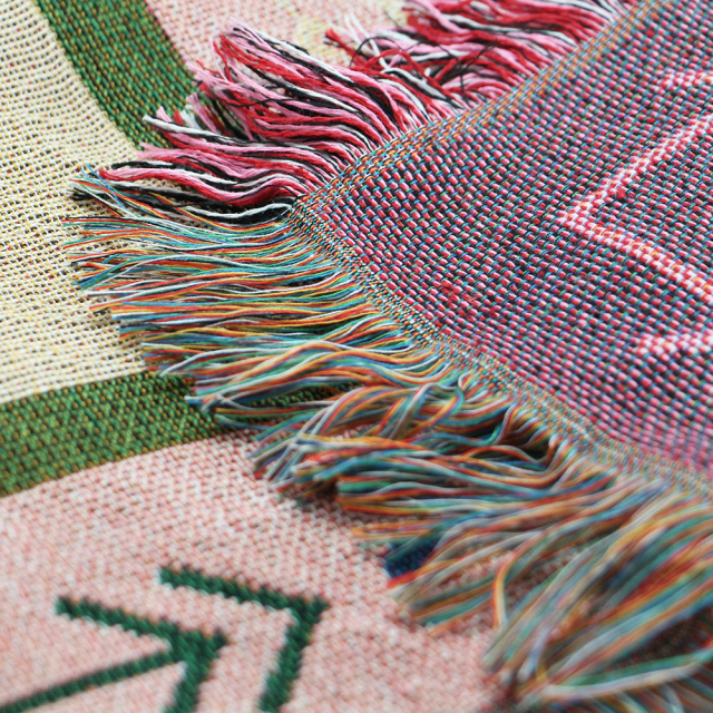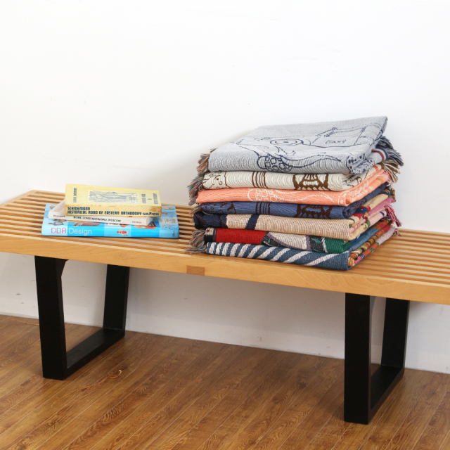 インテリアとして1枚配置するだけで絵になるアイテムなので、ソファやベッド、車内にサラッと掛けるだけで手軽に空間の印象を変えることが出来ます。また、掛け布団や膝掛けとしてはもちろんのこと、鮮やかな色合いを生かして壁面にアートな装飾として使用したりと、様々なシーンで活躍するアイテムです。
