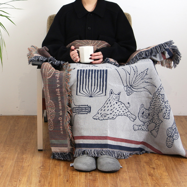 インテリアに馴染みやすいカラーリングとデザインで、2色展開。"グレー"はヴィンテージやメンズテイストに、"アプリコット"はナチュラルや北欧テイストに相性がよく、性別を問わず幅広くご使用いただけます。ソファやベッドにさらりと掛けて、肩から羽織れる大判サイズは膝掛けとして、タペストリーのように壁面アートとしてなど、様々なシーンでお部屋を彩ってくれます。