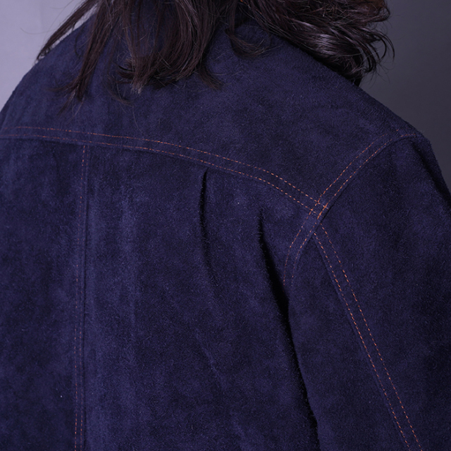 姫路市内の若手タンナーと共に実験を繰り返し、遂に完成した“ウォッシャブルホースラフアウト”。ラフだけど快適。新素材の洗えるホースハイドで仕立てた新感覚のコンフォータブルレザーウェア。水、火、風に強く耐久性と汎用性の高いアッパーには、国内タンナーと共同開発した、独自のオイルを施したウォッシャブルホースレザーを使用。クロムなめしにより柔軟性もあり、動きやすく天候に左右されず激しい使用にも耐える耐久力を併せ持つデイリーに活躍してくれる1着に仕上がっています。タウンユースやアウトドア、ワークウェアとしてヘビーデューティーに使用でき、洗濯機で丸洗いもできる新感覚のレザーウェアです。生デニムを意識した濃紺カラーに仕上げた今作は、洗いを繰り返すことで染料が褪色し、デニムのようなエイジングをお楽しみいただけます。今までの MOTORの中でも特に身幅やアームホールはゆるめの設定にしていますので、インナーに厚手の物を着てもゴワつきがなく、ざっくりと羽織っていただけます。