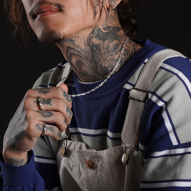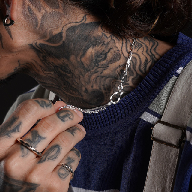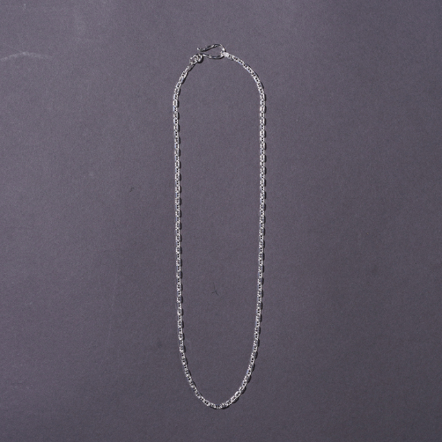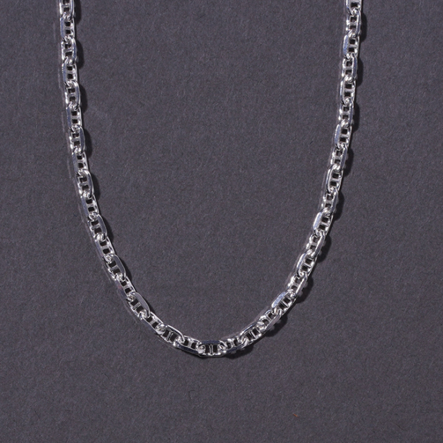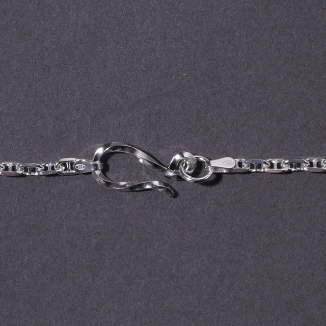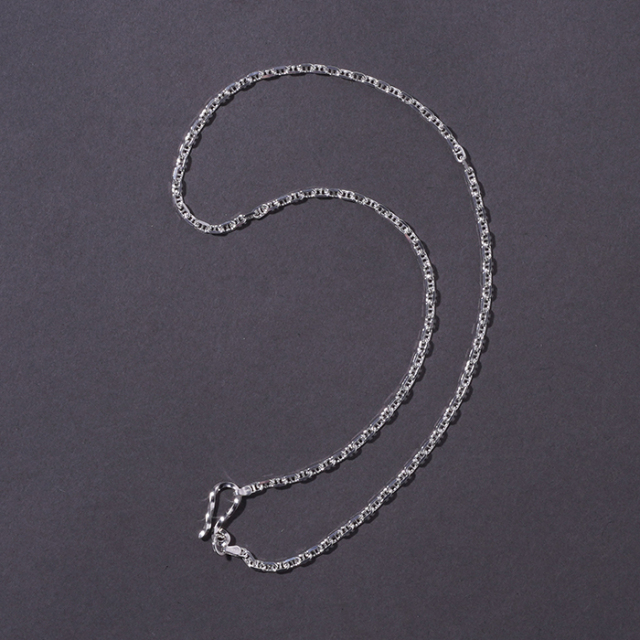 船が停泊中に海底に沈める錨(いかり)に取り付けられるチェーンをモチーフにしたアクセサリーです。楕円の真ん中をつないだパーツを連結したチェーンで、強度と重さを兼ね備えています。チェーンのエンドには、数々のローライダーやバイカーに愛される"ツイスト"パーツを採用致しました。ネックレスチェーンのみでの使用はもちろん、NASTOYSから展開させているペンダントトップと合わせてご使用ください。