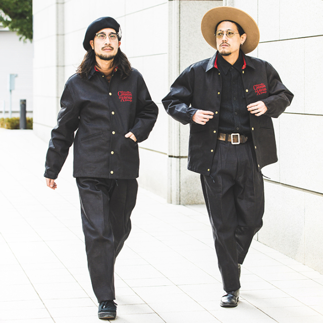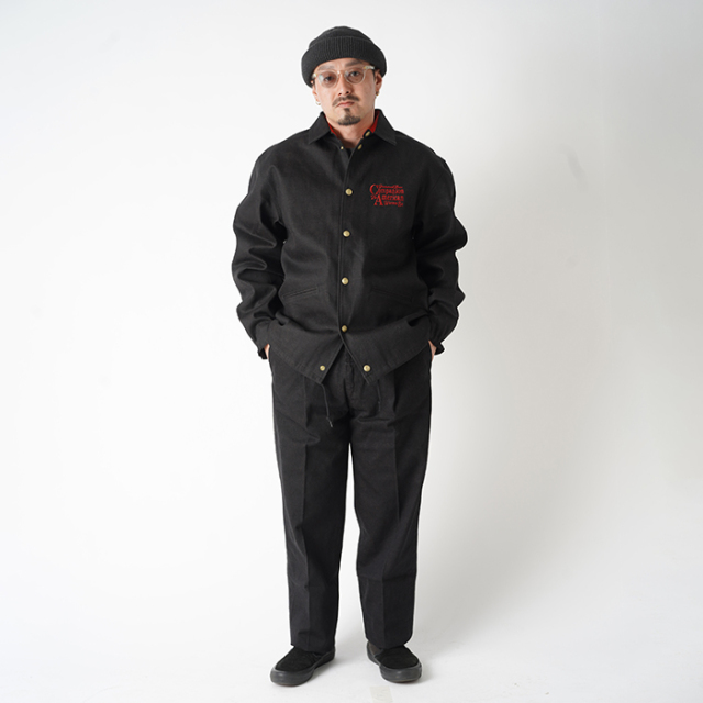 TROPHY CLOTHING×AMERICAN WANNABE Blackie Denim Slacks。