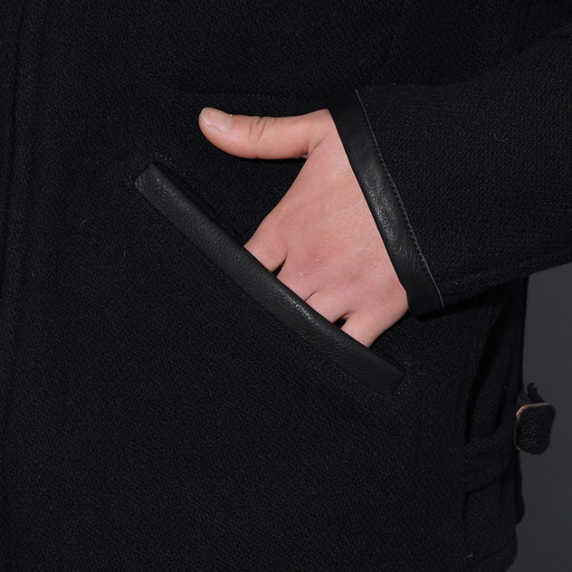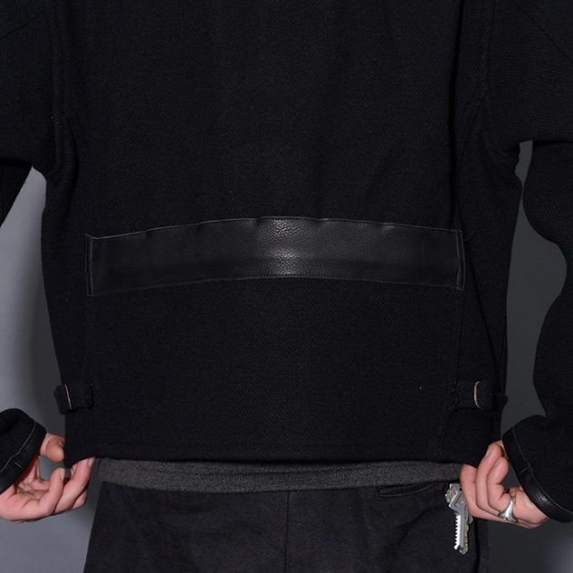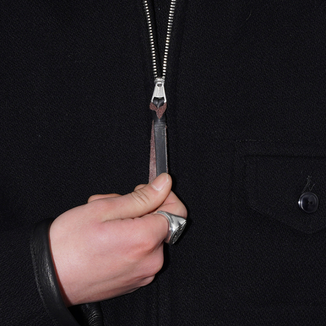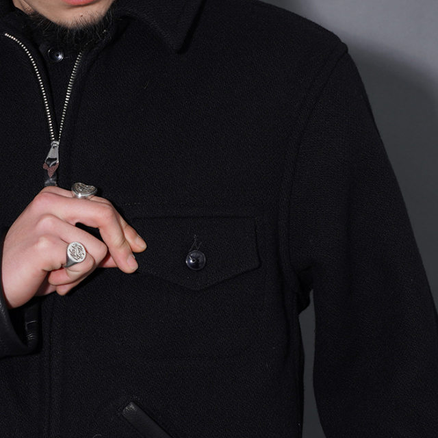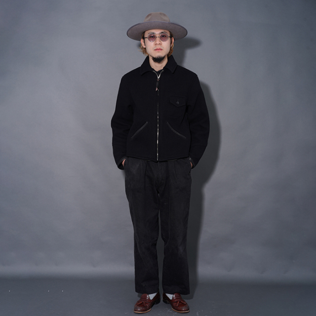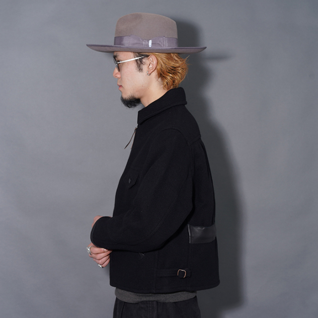 背面にゆとりを持たせながらもバックベルトでシェイプしたピンチバックスタイル、前たてのボタン付きウインドフラップやオーバル状の鉄バックル等、90年前に考案された事に驚愕する素晴らしいディティールを再現しています。