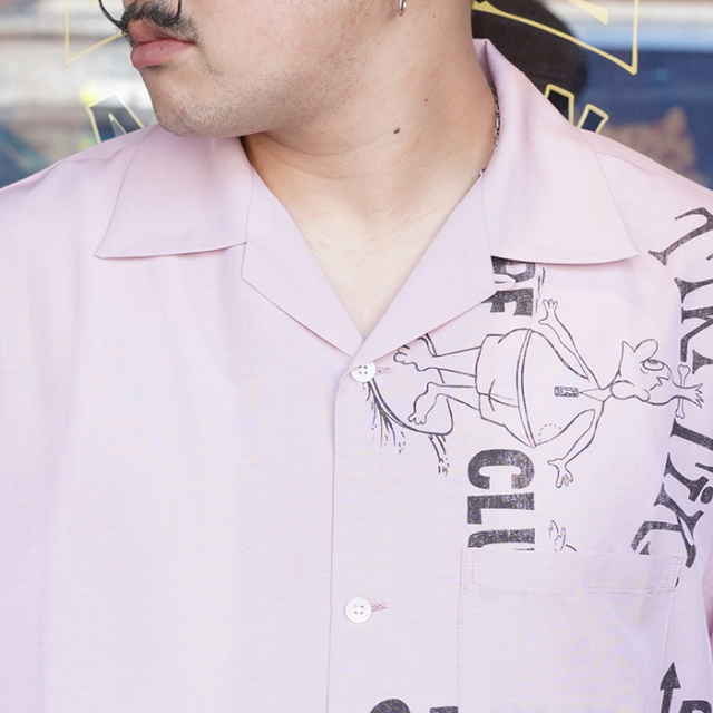 VOODOOやTIKIの世界観あふれるキャラクターやレタリングがWEIRDOらしいサーフクラブデザインのゆったりめのボックスシルエットシャツ。