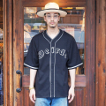 フロントのロゴや袖口、前立てのラインテープがアクセントのメッシュベースボールシャツです。