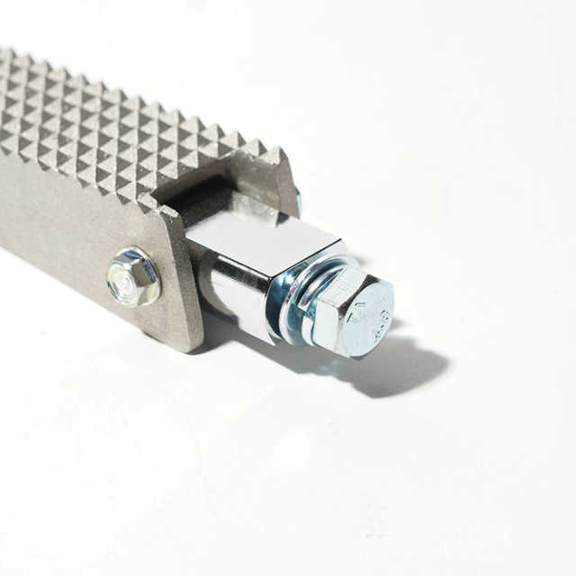ステップ上面のセレーション加工は、ステップエンドのツバとも相まって、雨天時やダートライドの際にも確かなグリップを確保してくれる。
